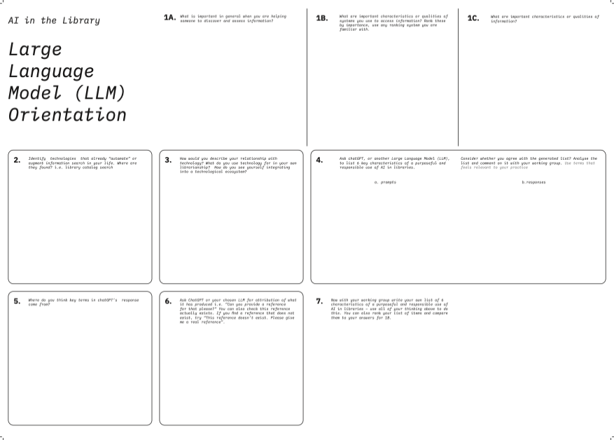 This worksheet guides participants to write a list of characteristics of a responsible use of AI like Large Language Models in libraries. It can easily be repurposed for different disciplines or contexts.